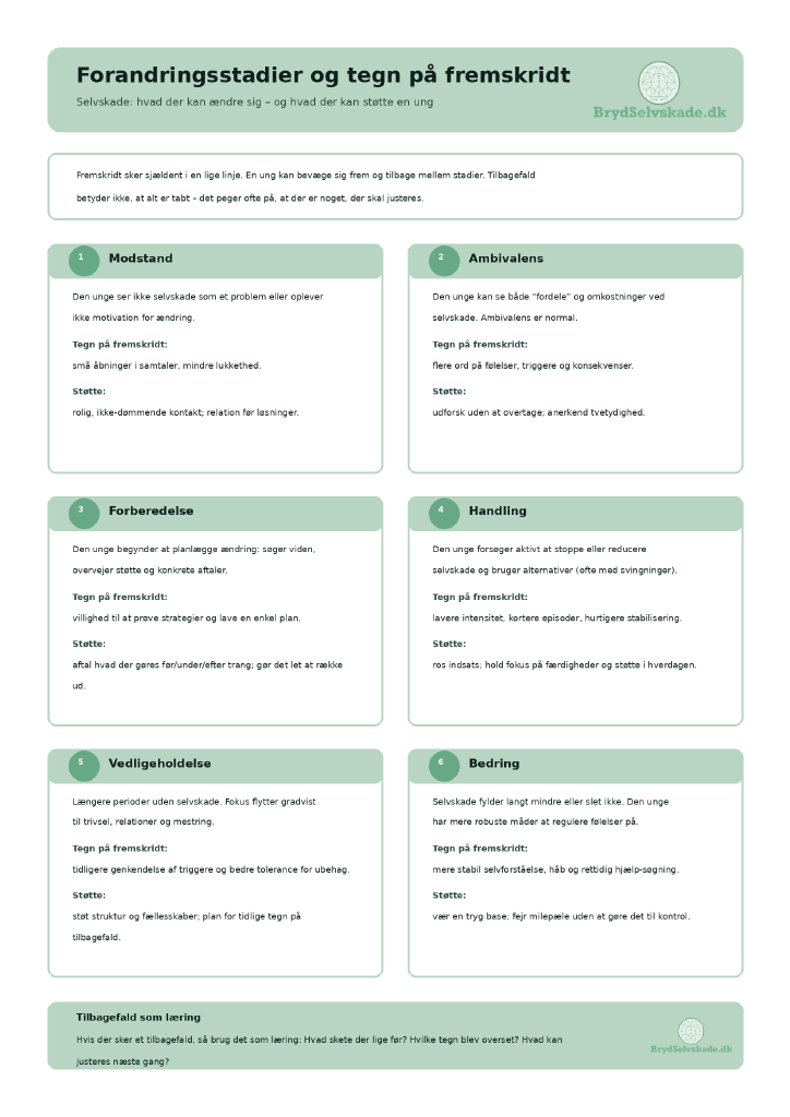 Forandringsstadier ved selvskade og tegn på fremskridt